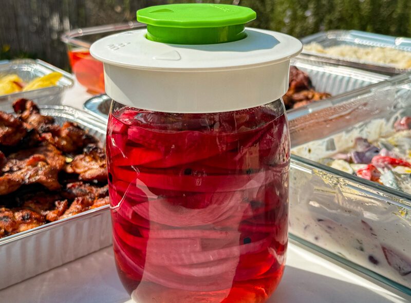 Gyorsan elkészíthető, roppanós savanyított lilahagyma, amely friss, édes-savanykás ízével tökéletes kiegészítője grillételeknek, sülteknek vagy szendvicseknek. Már egy éjszaka alatt fogyasztható, és egyszerű alapanyagokból készül.